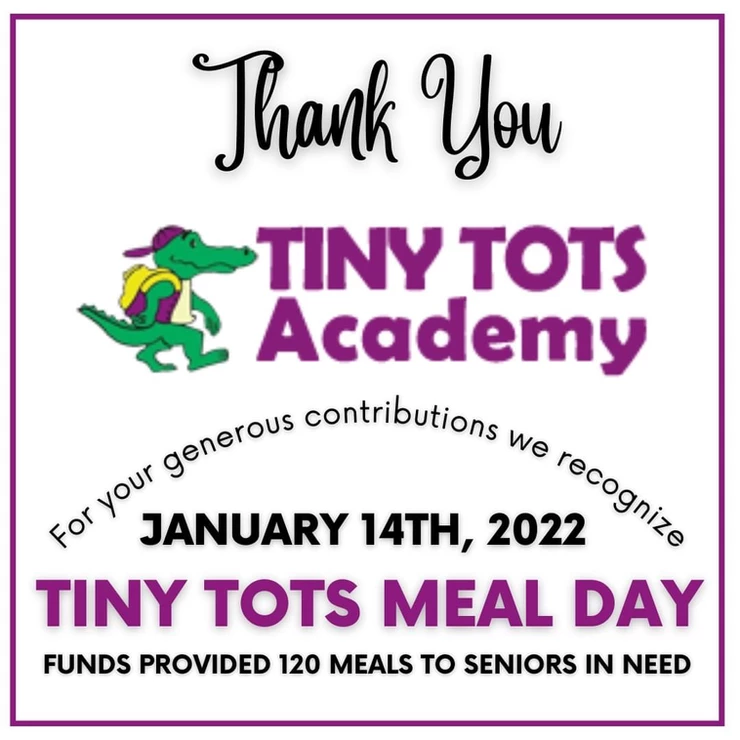 Tiny Tots Academy was celebrated for making a huge impact thanks to students, parents/guardians and staff! Being busy bees in efforts of raising funds, we were able to provide 120 meals for seniors in need! We LOVE participating in fundraisers to assist those in need.